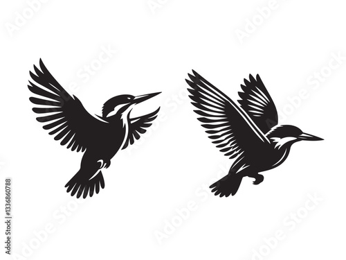 © Robiul, Fototapeta premium kingfisher bird silhouette vector illustration on white background