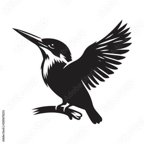 Fototapeta premium Kingfisher bird Silhouette Vector Illustration, Solid White Background.