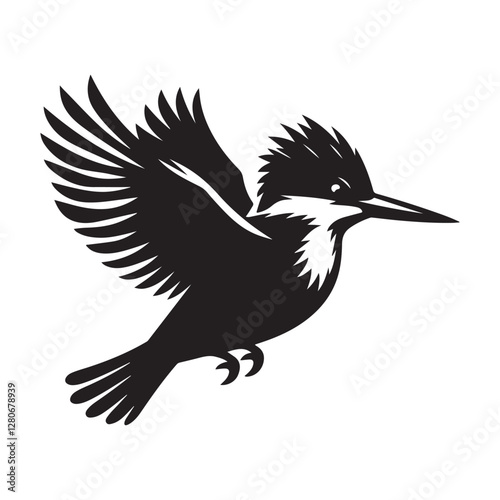 Obraz premium Kingfisher bird Silhouette Vector Illustration, Solid White Background.