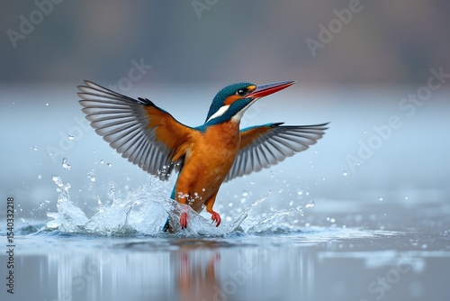© ᴹᴿ°Shamir, Obraz premium Kingfisher diving into still lake, splash frozen mid-air.