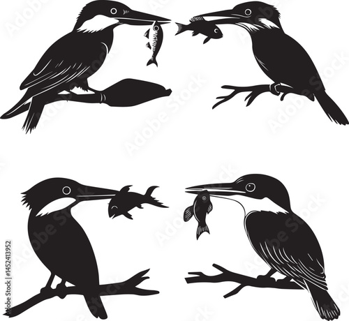 Fototapeta premium Kingfisher holding fish in water silhouette vector