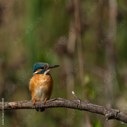© Alexandru, Fototapeta premium Kingfisher on a branch with green background