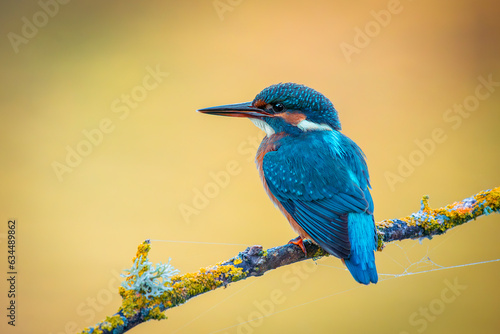 © fsanchex, Fototapeta premium Kingfisher on a branch with warm and background