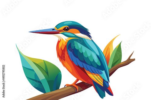 © Mahinur, Obraz premium kingfisher on branch isolated on white background