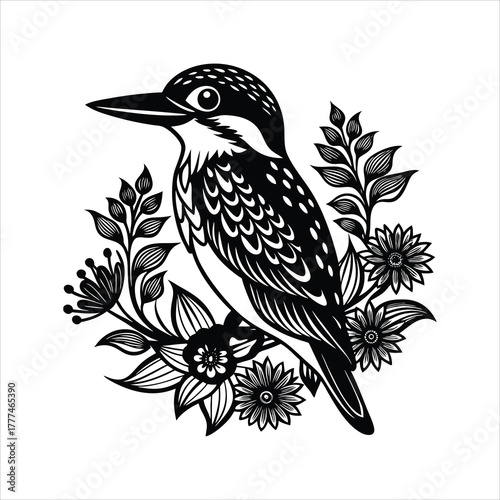 Obraz premium Kingfisher with decorative floral elements vector