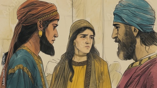 Fototapeta premium 1 Kings,Ahijah’s Prophecy Against Jeroboam,Biblical Illustration of Ahijah’s Prophecy Against Jeroboam, Deceit and Judgment, Themes of Divine Justice on Beige Background with Copyspace