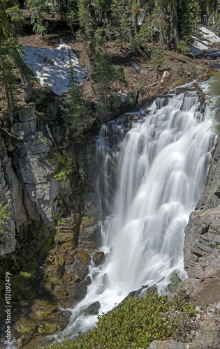 Obraz premium Kings Creek Falls tumbles down a gorge in Lassen Volcanic National Park in...