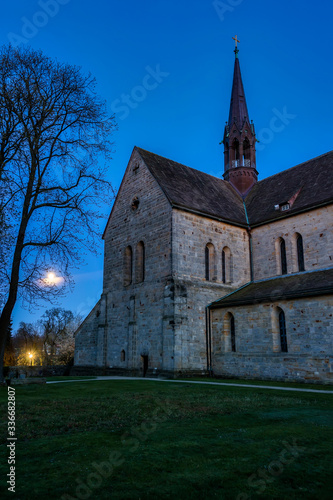 Fototapeta premium Kirche des Kloster Loccum abends bei Vollmond im April 2020