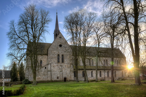 Naklejka premium Kirche des Kloster Loccum mit untergehender Sonne Dezember 2019