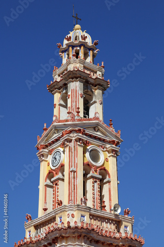 © dedi, Obraz premium Kirchturm von Panormitis auf Symi, Griechenland