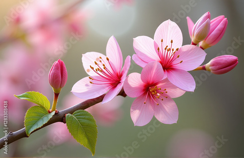 © fotoluigi868, Fototapeta premium Kirschblütenzweig Is Used As A Banner With Its Delicate Shape And Vibrant Color Evoking A Sense Of Springtime And New Beginnings Slowly. 00002