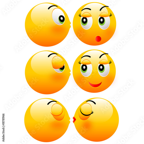 © Elena Baryshkina, Fototapeta premium Kiss Love Smiley Icons