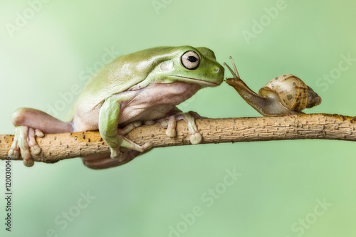 © lessysebastian, Obraz premium KISS MY PRINCE : SNAIL KISS FROG
