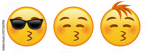 Fototapeta premium Kissing face with closed eyes Set of three emoji
