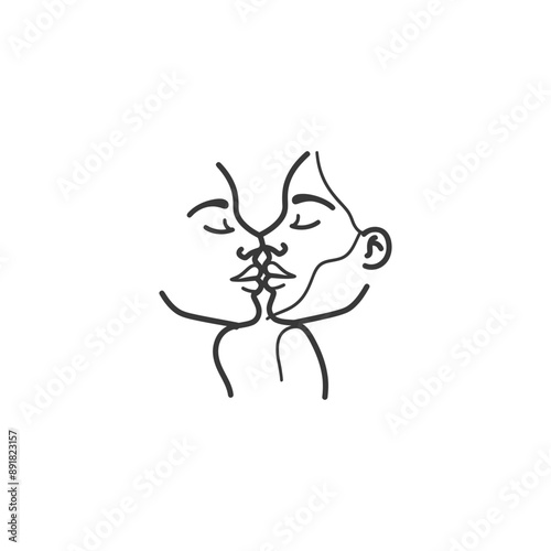 © NikahGeh, Obraz premium kissing minimalist line art icon logo symbol