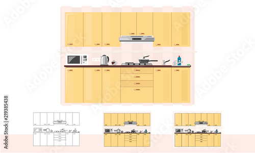 Fototapeta premium Kitchen. Dinner flat or linear room