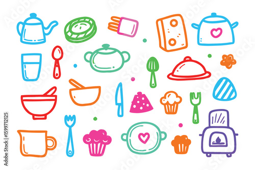 Fototapeta premium Kitchen doodle art: A vibrant and playful collection of kitchen essentials...