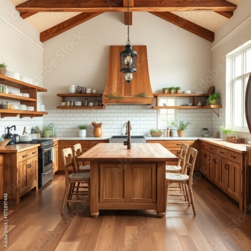 © Rahmat , Fototapeta premium Kitchen interior design. Farmhouse style kitchen interior design. Architecture interior. Farmhouse interior. Farmhouse style.