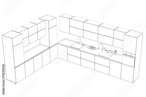 Fototapeta premium Kitchen interior furniture isolated on transparent background, outline...