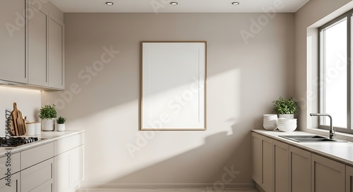 Fototapeta premium Kitchen Interior with Empty Frame and Natural Light