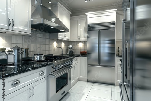 Fototapeta premium Kitchen interior with stainless steel appliances and white cabinets