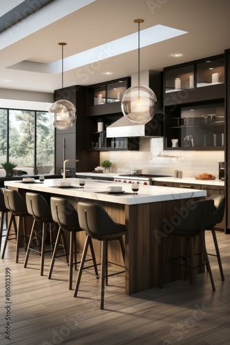 © Adobe Contributor, Fototapeta premium kitchen island with black marble and wood base