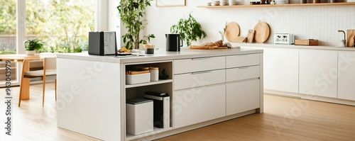 Fototapeta premium Kitchen island with built-in storage for work supplies, multifunctional and...