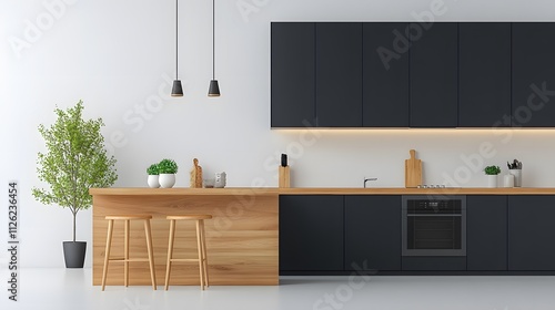 Fototapeta premium Kitchen mockup with glass cabinets, modern appliances, clean lines, 3D...
