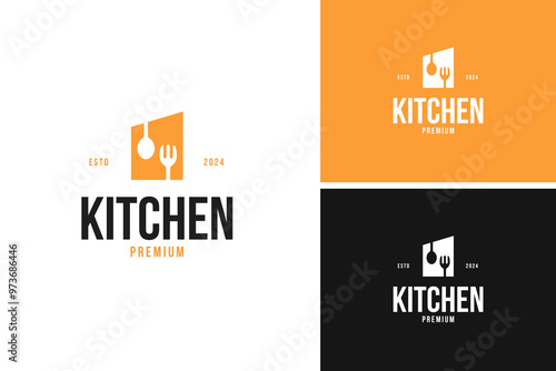 © Brandingasik, Fototapeta premium Kitchen restaurant logo design template vector illustration idea