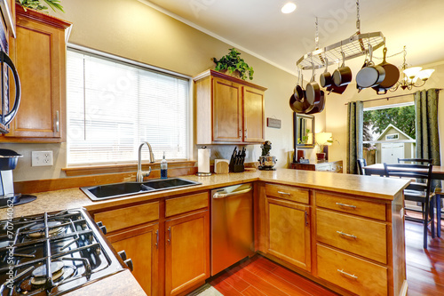 © Iriana Shiyan, Fototapeta premium Kitchen room wtih hanging pot rack