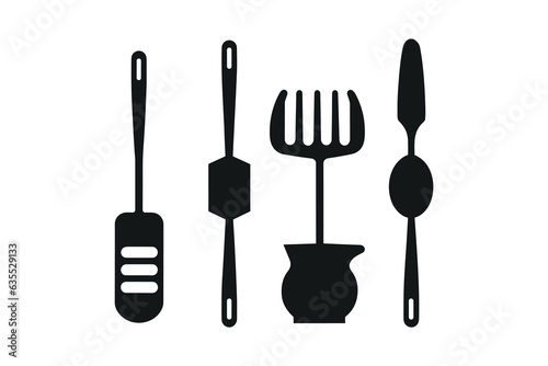 Fototapeta premium Kitchen Tools Vector Art, Icons, and Graphics, Premium Vector, Kitchen tools silhouette black and white vector, Kitchen tools silhouettes Royalty Free Vector