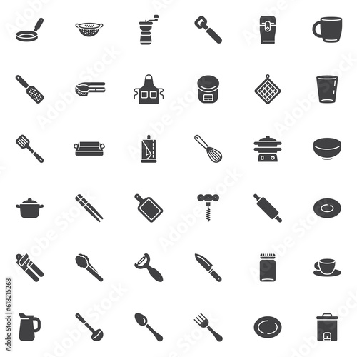 © alekseyvanin, Obraz premium Kitchen tools vector icons set