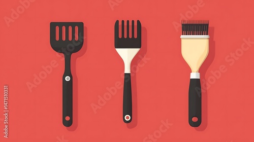 © MASJAB, Fototapeta premium Kitchen Utensils Spatula with Fork, and Brush.