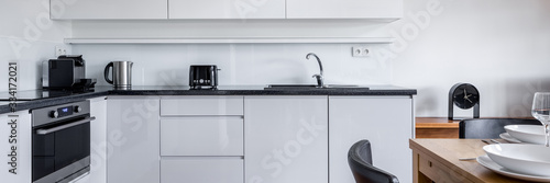 © Dariusz Jarzabek, Fototapeta premium Kitchen with white furniture, panorama