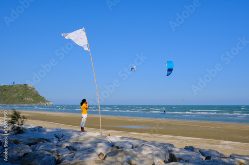 © GroovyGloryPhoto, Obraz premium kite surfing on beach