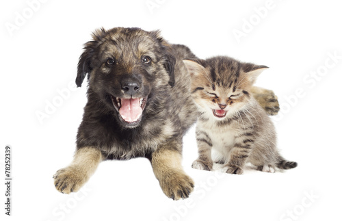 © Happy monkey, Obraz premium kitten and puppy