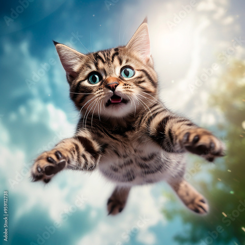 © Дмитрий Плахов, Obraz premium Kitten falling from the sky with a surprised expression