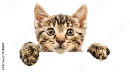 © Oksana_Latysheva, Obraz premium Kitten holding blank banner isolated on transparent background