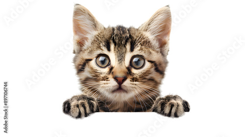 © Oksana_Latysheva, Obraz premium Kitten holding blank banner isolated on transparent background