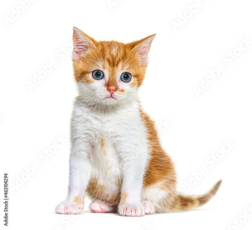 Fototapeta premium Kitten Mixed-breed cat ginger and white, Isolated on white
