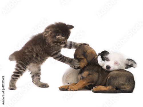 © fotomaster, Fototapeta premium kitten tries to wake up sleeping