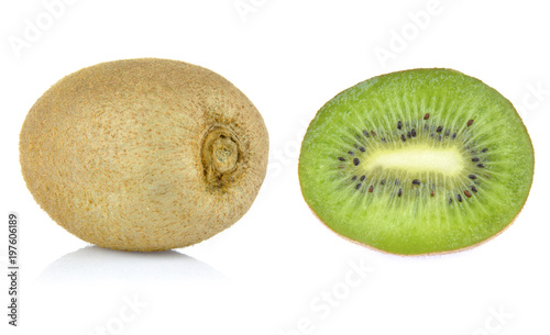 Obraz premium Kiwi. Brown ripe kiwi and fruit slice isolated on white background