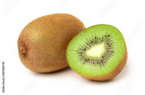 © natthapol, Obraz premium Kiwi fruit and Slices isolated on white background, Juicy kiwi