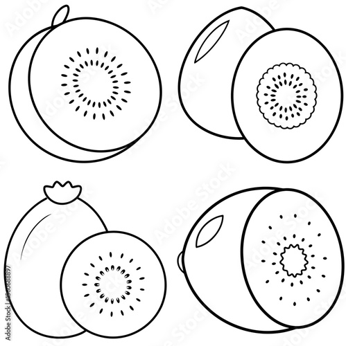 © AlMaruf, Naklejka premium Kiwi Fruit Icon – Tropical Fruit Line Art, Outline Vector Illustration