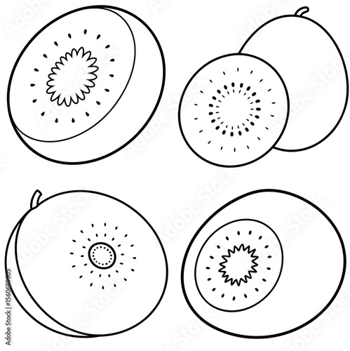 © AlMaruf, Naklejka premium Kiwi Fruit Icon – Tropical Fruit Line Art, Outline Vector Illustration