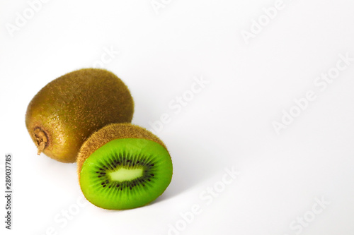Obraz premium kiwi one pieces and cut half isolated on white background