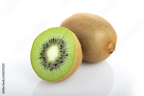 Obraz premium Kiwi, sliced kiwi. Two half kiwi on a white background. (Tr - kiwi)