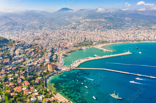 © Nikolay N. Antonov, Naklejka premium Kizil Kule Red tower fortress and Alanya city in Turkey, Asia