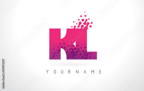 Fototapeta premium KL K L Letter Logo with Pink Purple Color and Particles Dots Design.