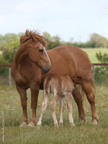 © Nigel Baker, Fototapeta premium Klacz karmi swoje źrebię
